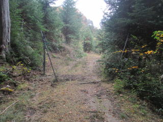 本道に乗る(12:10)〜本道下る〜獣除けゲート(13:22)〜二つ目ゲ〜ト通過〜