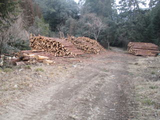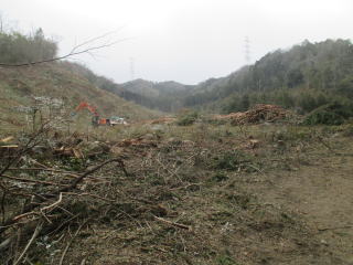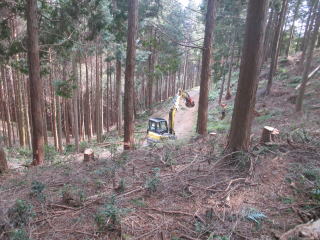 地図に無き林道現れて、無事三角点に着いたけど新林道に重機が入り間伐作業最中だった。