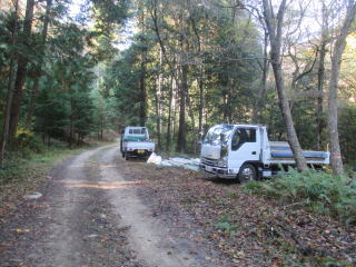 本道に乗る(12:10)〜本道下る〜獣除けゲート(13:22)〜二つ目ゲ〜ト通過〜