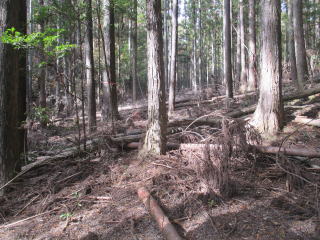6・谷突き詰め/町境界(12:50)〜作業道〜支線突き当たり(12:08)〜谷越え〜