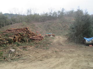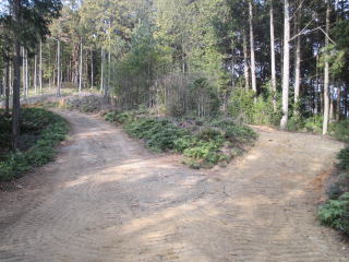 地図に無き林道現れて、無事三角点に着いたけど新林道に重機が入り間伐作業最中だった。
